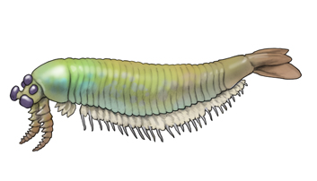 化石は中国雲南省の澄江地域の地層から発見され、澄江動物群の 1種になります。カンブリア紀のおおよそ5億1800万年前の 海に生息した節足動物で、 オパビニアのように5つの目をもち、 アノマロカリス の仲間のような付属肢をもつなど、両者の特徴を 掛け合わせたような姿をしていました。 系統的な位置はオパビニアやアノマロカリスと比べると、 現在にいる昆虫やエビなどの真正の節足動物に近いとされています |