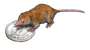 ネズミの仲間ではなく、モグラなどの食虫類の仲間です。 世界で最も小さな哺乳動物です。トガリネズミの仲間は 鼻先がとがっているのが特徴で、その細長い鼻で石のすき間 などの虫を捕らえてたべます。チビトガリネズミは 体が小さいため、30分おきに虫を食べます。普通、 小さな動物はよく動き回りますが、チビトガリネズミは しばしば、草のかげで休み、エネルギーを無駄に使いません。 ===========================================================