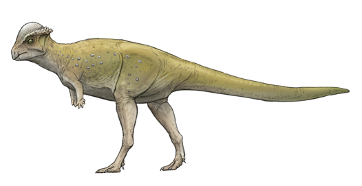 おおよそ1億1000万年前のアジアに生息した恐竜・堅頭竜のです。 もっとも古い時代に生息した堅頭竜類で、このグループでもっともしられる パキケファロサウルス と同じような分厚いドーム状の頭をもっていました。 このドーム状の頭は成長ともに発達すると見られていましたが、 本種はまだ2歳ほどの未成熟個体でありながら、立派なドーム状の頭を していました。 化石は2019年にモンゴルで発見され、2025年に新属新種として 発表されました。 |